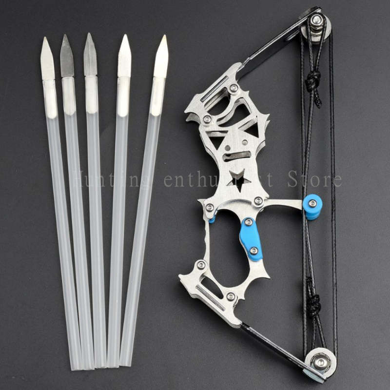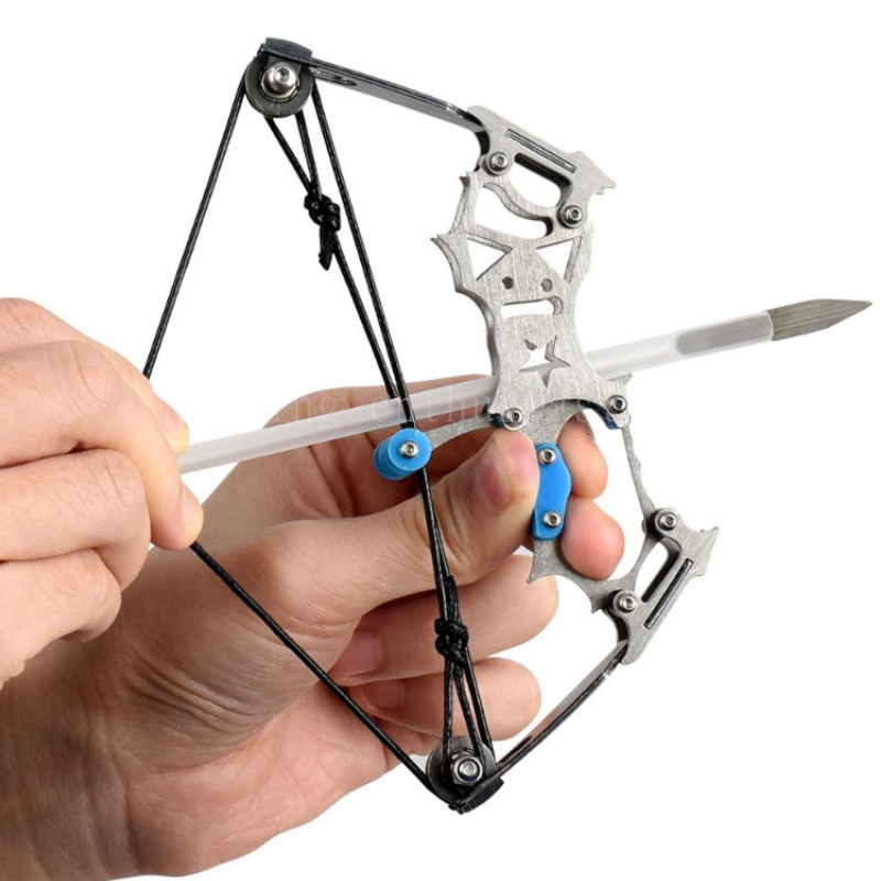 【Portable】: The mini compound bow can be carried around not only to fire the attached professional arrows, but even to take the materials in place, bamboo sticks, toothpicks, and even chopsticks, pencils, etc., so you can use the mini compound bow anywhere to enjoy archery fun.