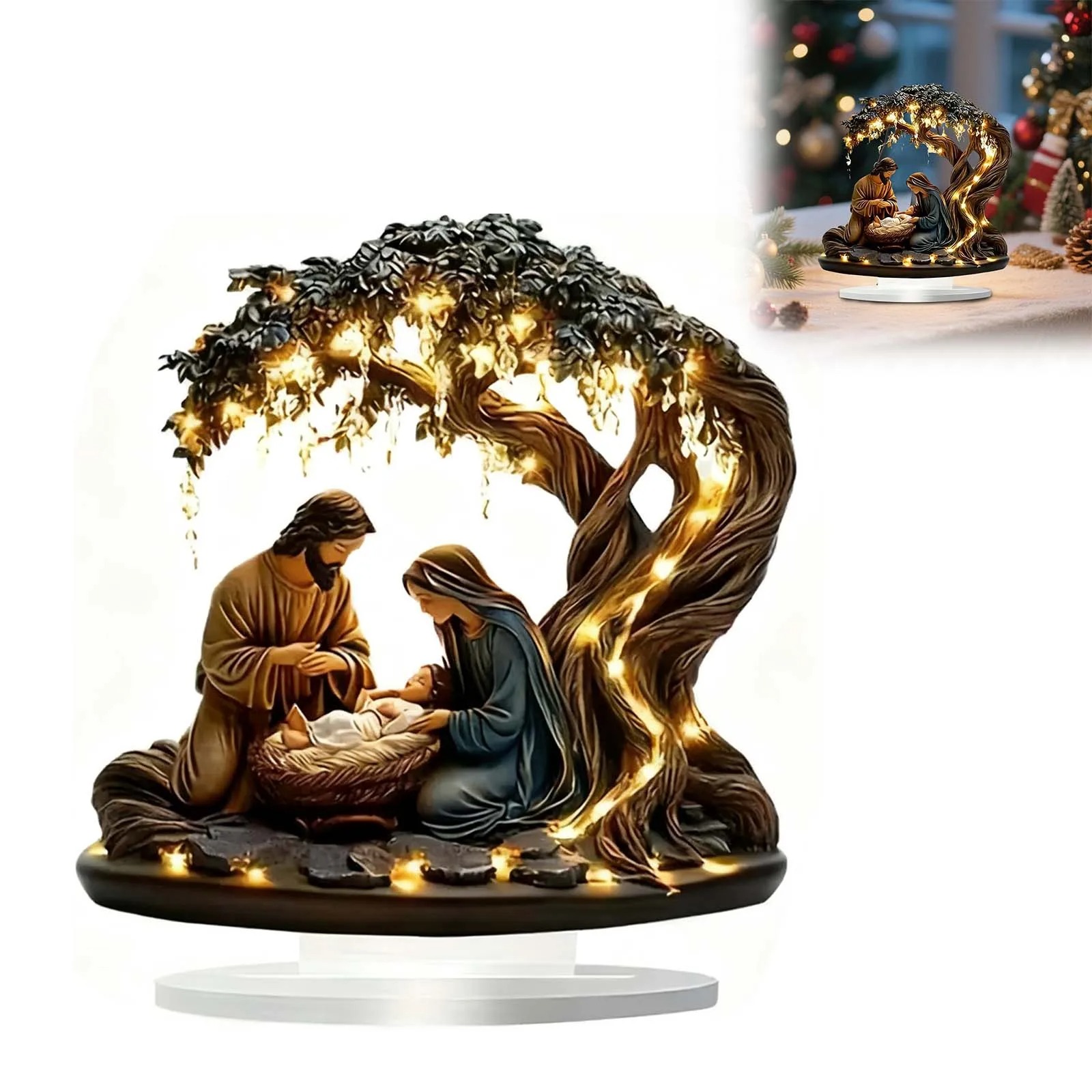 【Sacred Nativity Scene Design】This acrylic Christmas ornament beautifully depicts the Holy Family—Baby Jesus, Mary, and Joseph—under a radiant tree, symbolizing faith, peace, and the true spirit of Christmas. A meaningful Christian decoration that brings reverence and warmth to your home, church, or prayer space