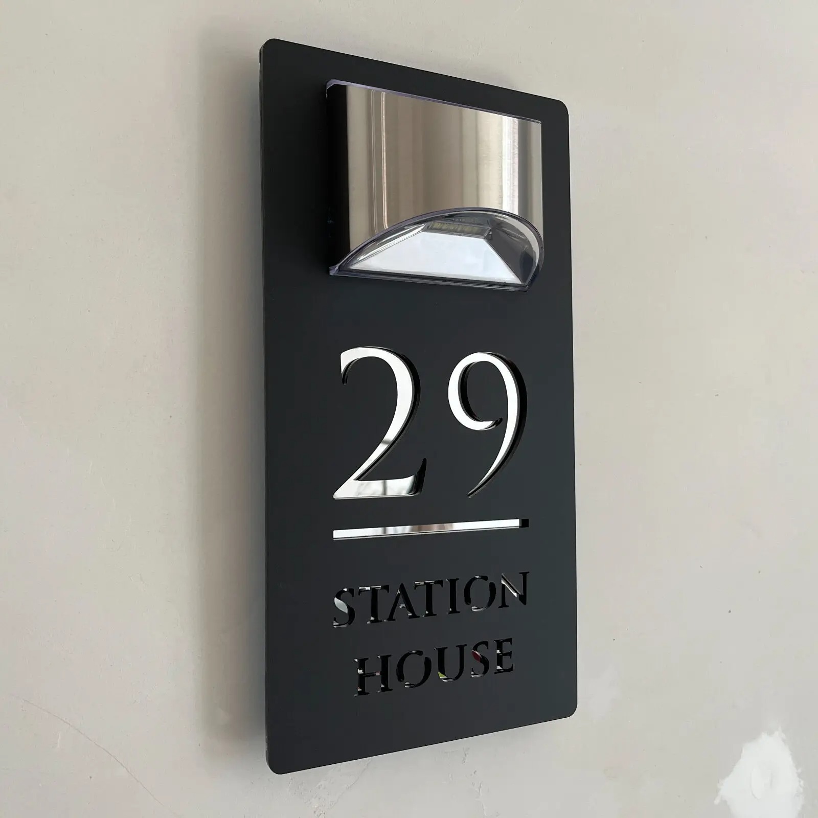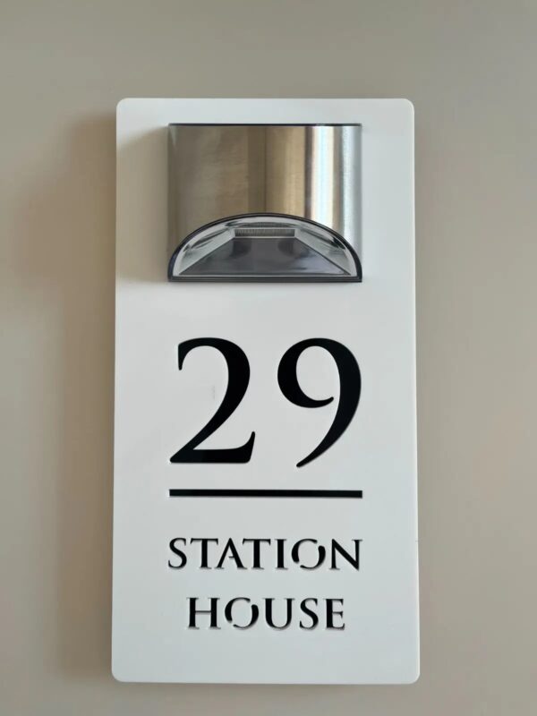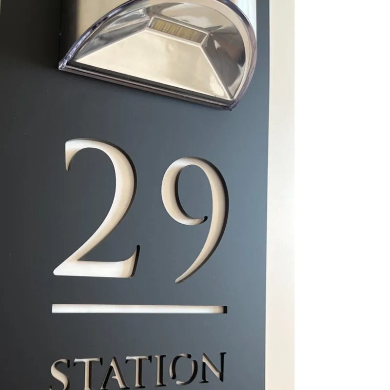 The Premium Solar House Sign LED is a stylish and durable sign that illuminates your house number with bright LED lights. It is powered by a solar panel that charges during the day and automatically turns on at night. No wiring, no batteries, no hassle!