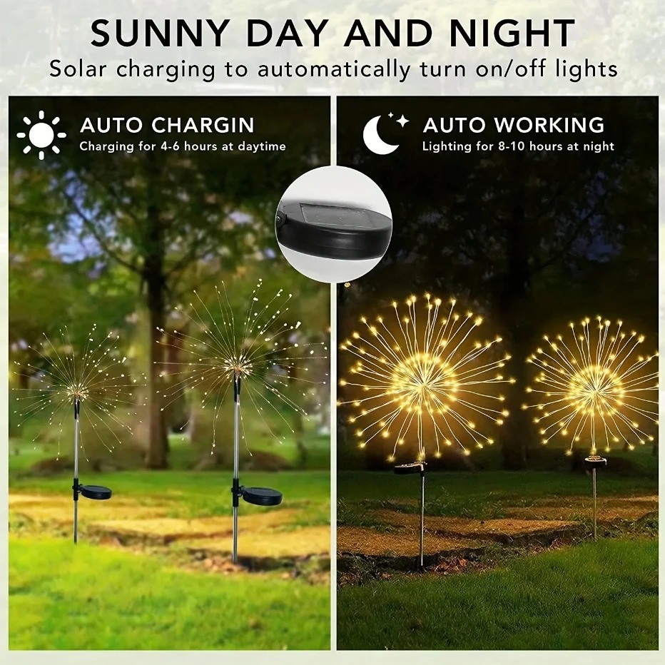 WIDE APPLICATION: The firework light can be installed on your garden, patio, lawn, backyard road, swimming pool, and more place to achieve the desired ambiance