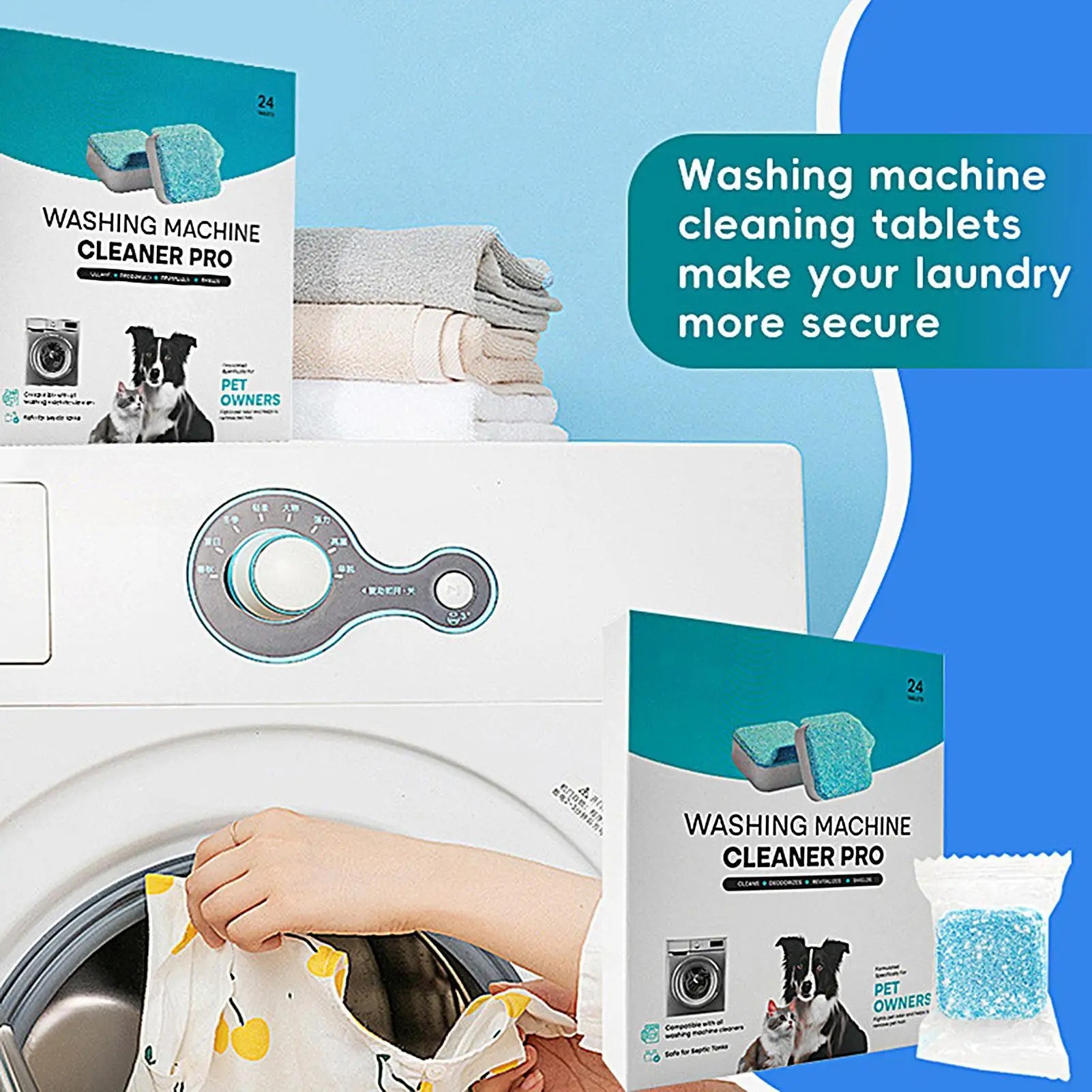 REDUCES PET HAIR BUILD-UP: Specially pet hair remover for laundry, each washer machine cleaner tablets contains special active enzymes that help dissolve hair and fur, reducing clogging and build-up in the washer.